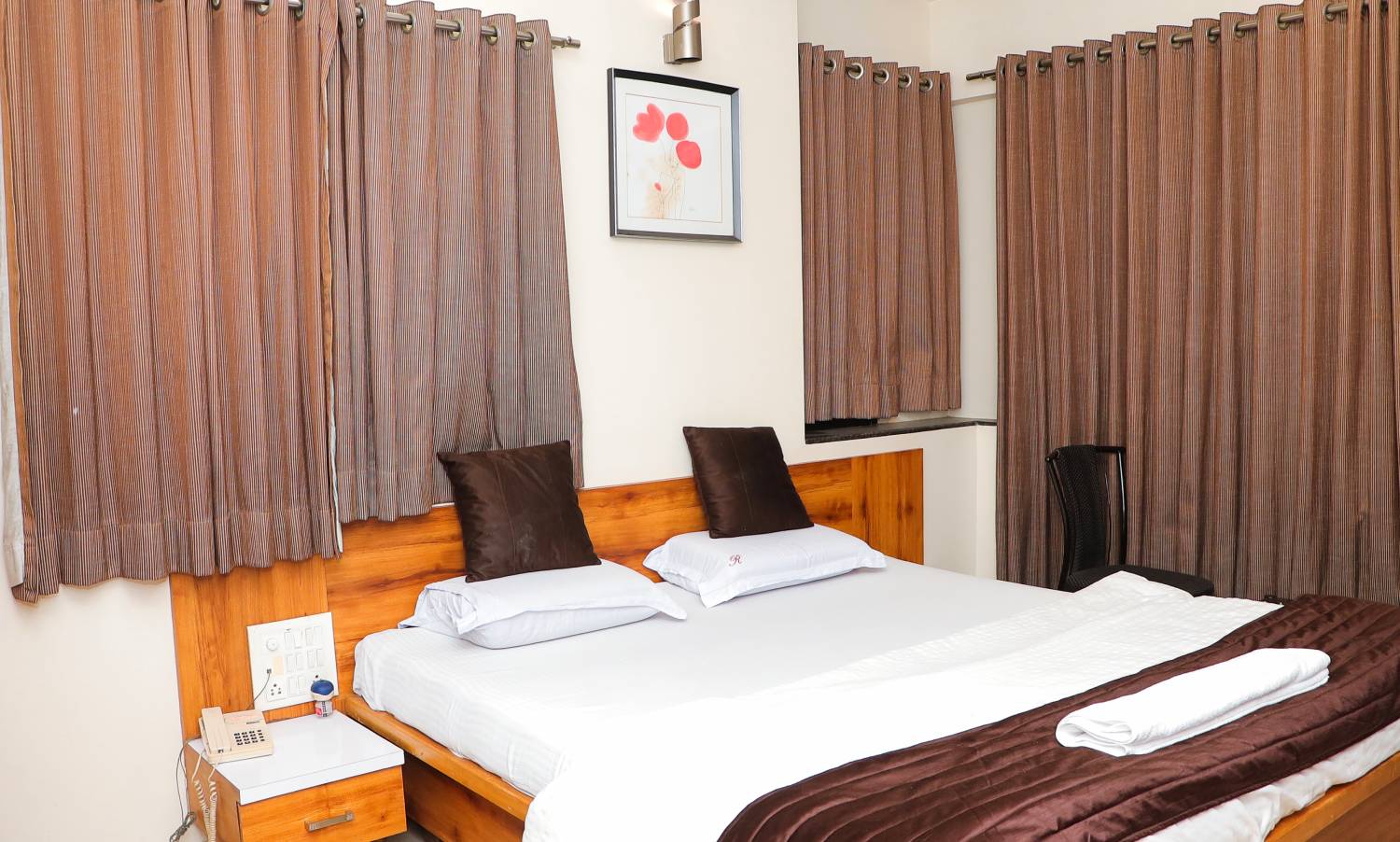 The Non-AC Standard Room at Hotel Royal Residency Executive is a budget-friendly option designed for a comfortable stay. Featuring a well-furnished space with a cozy bed.
